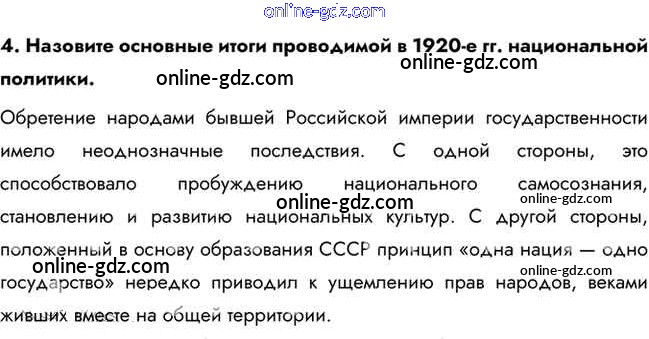 Готовые домашние задания по Истории за 10 класс Учебник Горинов, Данилов 2016 - Вопросы и задания для работы с текстом параграфа §11. Образование СССР. Национальная политика в 1920-е гг. 4