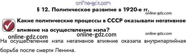 Готовые домашние задания по Истории за 10 класс Учебник Горинов, Данилов 2016 - Вопрос в начале параграфа §12. Политическое развитие в 1920-е гг. 1