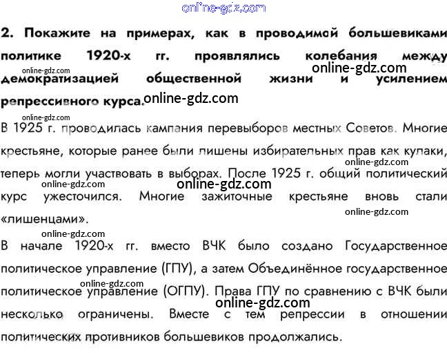 Готовые домашние задания по Истории за 10 класс Учебник Горинов, Данилов 2016 - Вопросы и задания для работы с текстом параграфа §12. Политическое развитие в 1920-е гг. 2