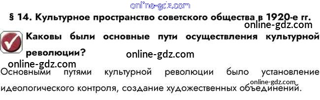 Готовые домашние задания по Истории за 10 класс Учебник Горинов, Данилов 2016 - Вопрос в начале параграфа §14. Культурное пространство советского общества в 1920-е гг. 1