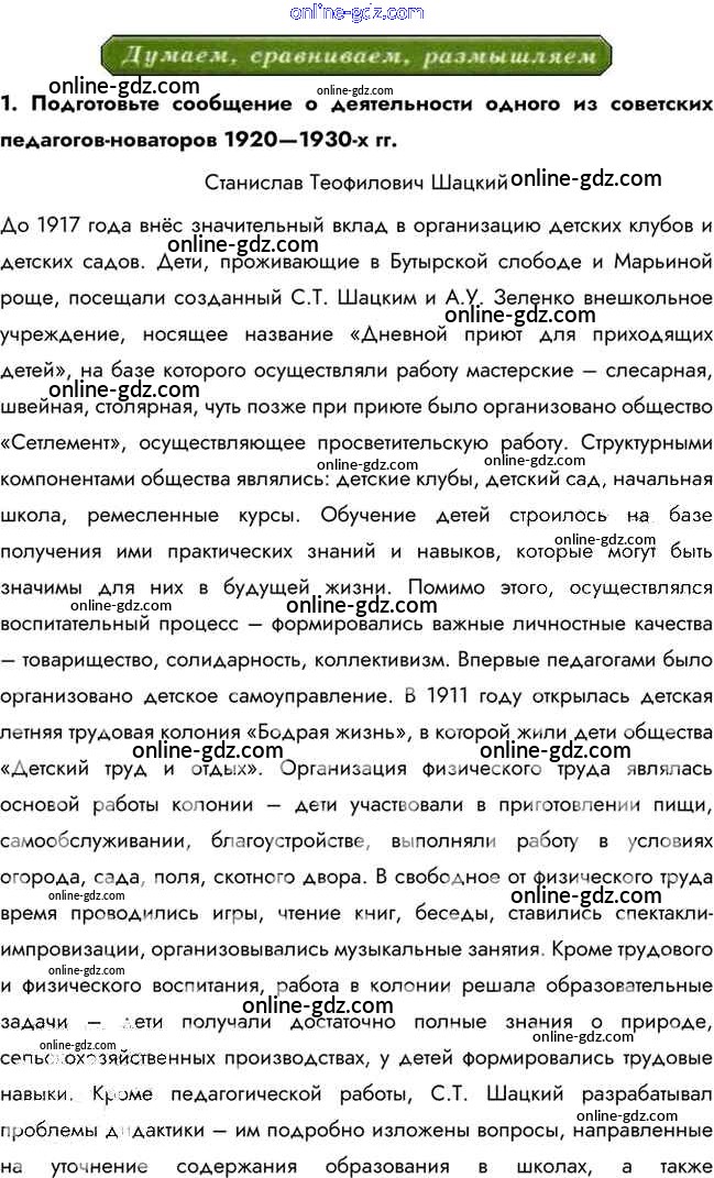 Готовые домашние задания по Истории за 10 класс Учебник Горинов, Данилов 2016 - Думаем, сравниваем, размышляем §14. Культурное пространство советского общества в 1920-е гг. 1