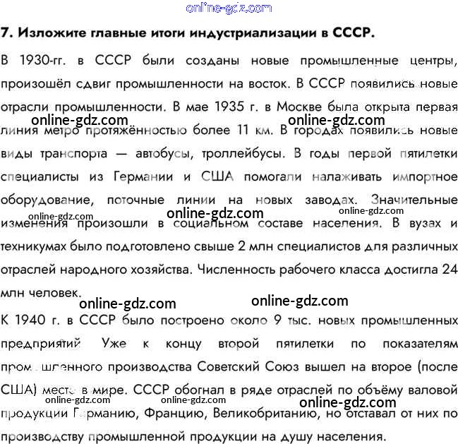 Готовые домашние задания по Истории за 10 класс Учебник Горинов, Данилов 2016 - Вопросы и задания для работы с текстом параграфа §15. «Великий перелом». Индустриализация 7