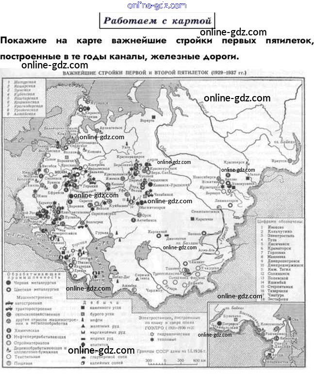 Готовые домашние задания по Истории за 10 класс Учебник Горинов, Данилов 2016 - Работаем с картой §15. «Великий перелом». Индустриализация 1