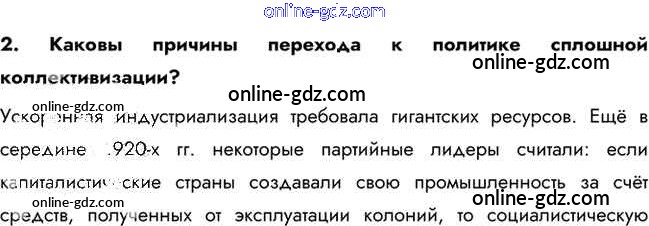 Готовые домашние задания по Истории за 10 класс Учебник Горинов, Данилов 2016 - Вопросы и задания для работы с текстом параграфа §16. Коллективизация сельского хозяйства 2