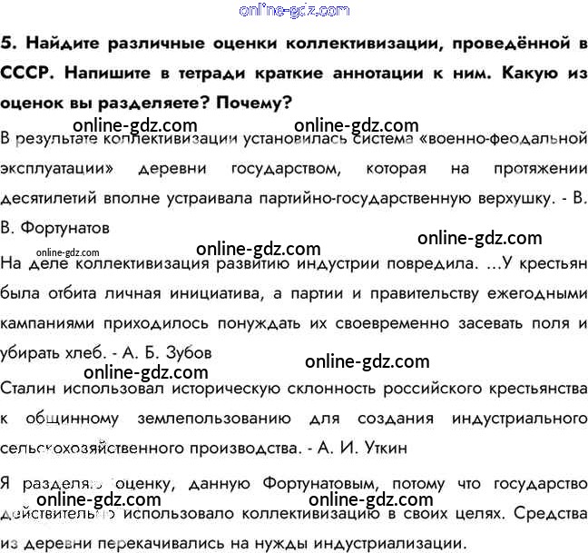 Готовые домашние задания по Истории за 10 класс Учебник Горинов, Данилов 2016 - Думаем, сравниваем, размышляем §16. Коллективизация сельского хозяйства 5
