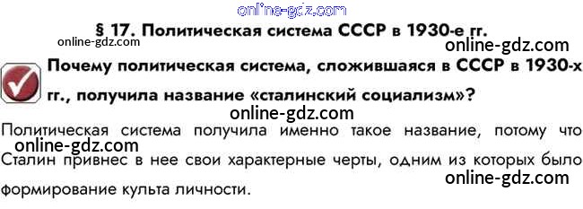 Готовые домашние задания по Истории за 10 класс Учебник Горинов, Данилов 2016 - Вопрос в начале параграфа §17. Политическая система СССР в 1930-е гг. 1