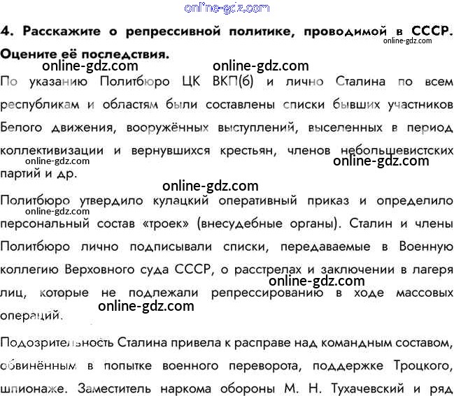 Готовые домашние задания по Истории за 10 класс Учебник Горинов, Данилов 2016 - Вопросы и задания для работы с текстом параграфа §17. Политическая система СССР в 1930-е гг. 4