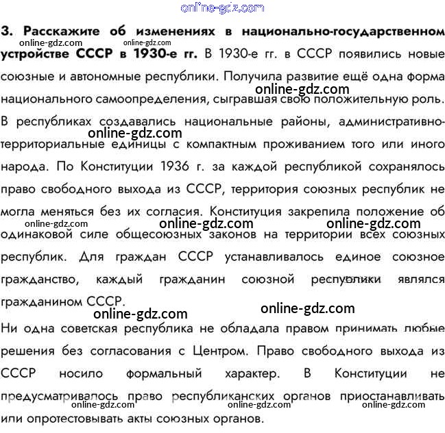 Готовые домашние задания по Истории за 10 класс Учебник Горинов, Данилов 2016 - Вопросы и задания для работы с текстом параграфа Советская национальная политика в 1930-е гг. 3