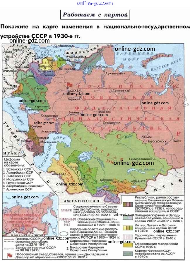 Готовые домашние задания по Истории за 10 класс Учебник Горинов, Данилов 2016 - Работаем с картой Советская национальная политика в 1930-е гг. 1