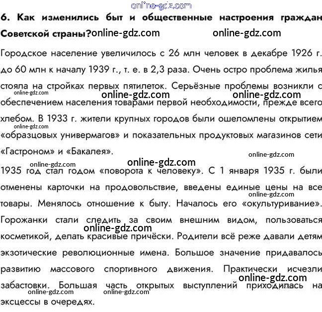 Готовые домашние задания по Истории за 10 класс Учебник Горинов, Данилов 2016 - Вопросы и задания для работы с текстом параграфа §18. Культурное пространство советского общества в 1930-е гг. 6