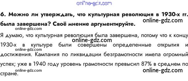 Готовые домашние задания по Истории за 10 класс Учебник Горинов, Данилов 2016 - Думаем, сравниваем, размышляем §18. Культурное пространство советского общества в 1930-е гг. 6