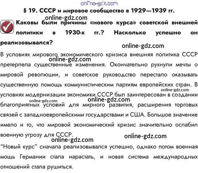 Готовые домашние задания по Истории за 10 класс Учебник Горинов, Данилов 2016 - Вопрос в начале параграфа §19. СССР и мировое сообщество в 1929—1939 гг. 1