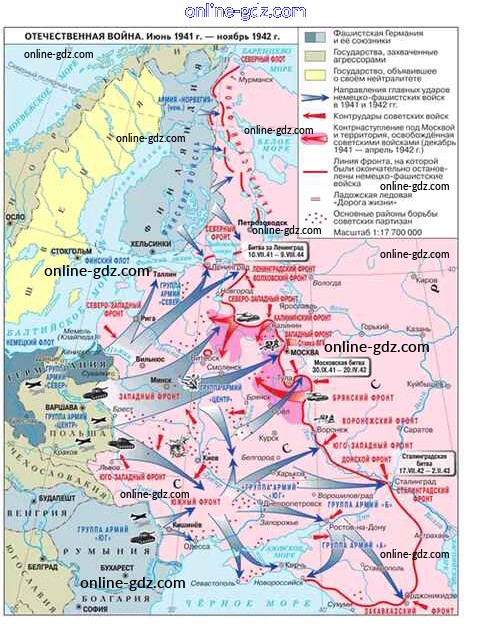 Готовые домашние задания по Истории за 10 класс Учебник Горинов, Данилов 2016 - Работаем с картой §21. Начало Великой Отечественной войны. Первый период войны (22 июня 1941 — ноябрь 1942 г.) 3