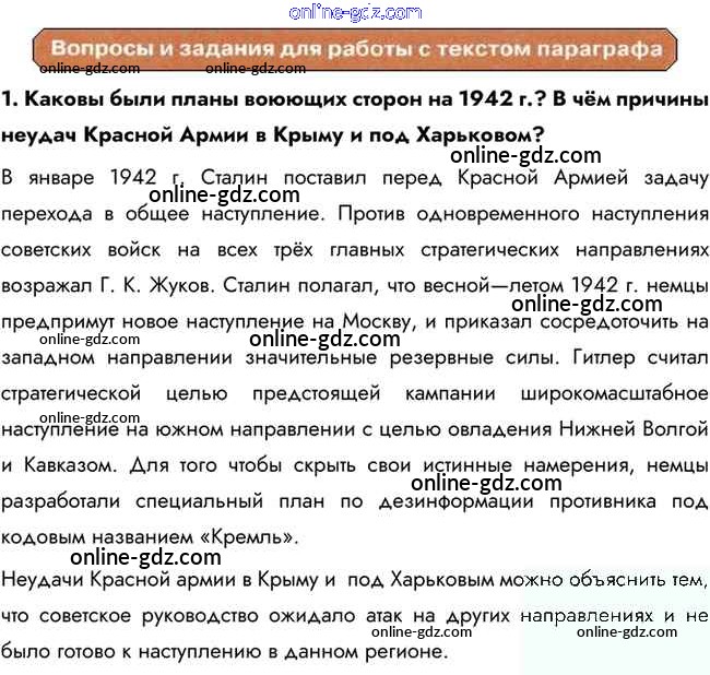 Готовые домашние задания по Истории за 10 класс Учебник Горинов, Данилов 2016 - Вопросы и задания для работы с текстом параграфа §22. Поражения и победы 1942 г. Предпосылки коренного перелома 1