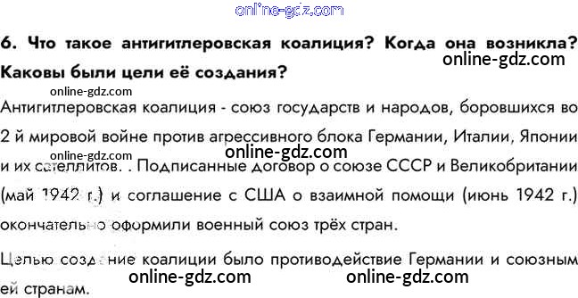 Готовые домашние задания по Истории за 10 класс Учебник Горинов, Данилов 2016 - Вопросы и задания для работы с текстом параграфа §22. Поражения и победы 1942 г. Предпосылки коренного перелома 6