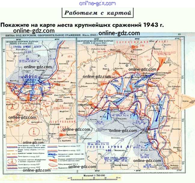 Готовые домашние задания по Истории за 10 класс Учебник Горинов, Данилов 2016 - Работаем с картой §24. Второй период Великой Отечественной войны. Коренной перелом (ноябрь 1942—1943 г.) 1