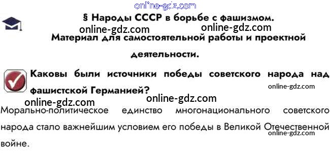Готовые домашние задания по Истории за 10 класс Учебник Горинов, Данилов 2016 - Вопрос в начале параграфа Народы СССР в борьбе с фашизмом 1
