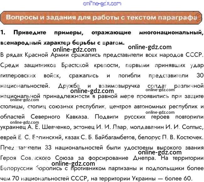 Готовые домашние задания по Истории за 10 класс Учебник Горинов, Данилов 2016 - Вопросы и задания для работы с текстом параграфа Народы СССР в борьбе с фашизмом 1