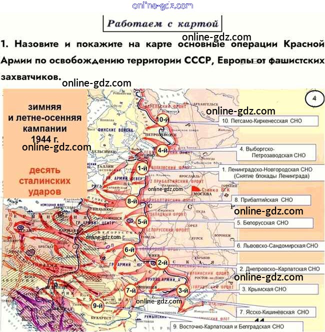 Готовые домашние задания по Истории за 10 класс Учебник Горинов, Данилов 2016 - Работаем с картой §25. Третий период войны. Победа СССР в Великой Отечественной войне. 1