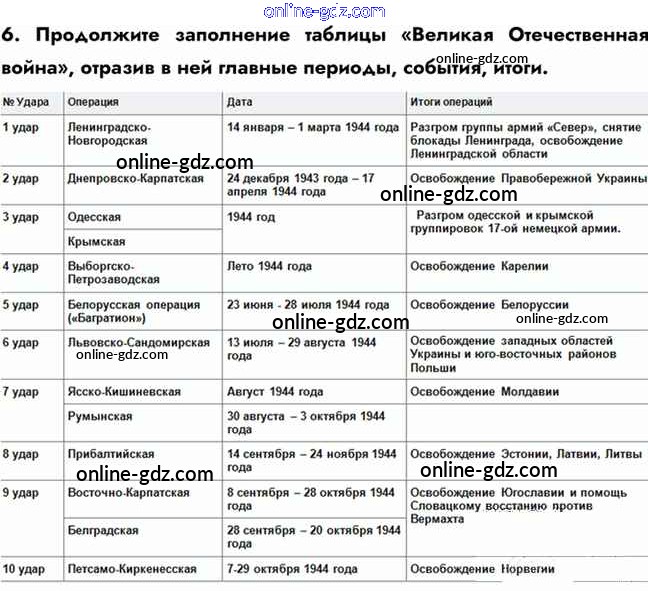 Готовые домашние задания по Истории за 10 класс Учебник Горинов, Данилов 2016 - Думаем, сравниваем, размышляем §25. Третий период войны. Победа СССР в Великой Отечественной войне. 6