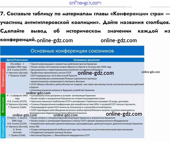 Готовые домашние задания по Истории за 10 класс Учебник Горинов, Данилов 2016 - Думаем, сравниваем, размышляем §25. Третий период войны. Победа СССР в Великой Отечественной войне. 7