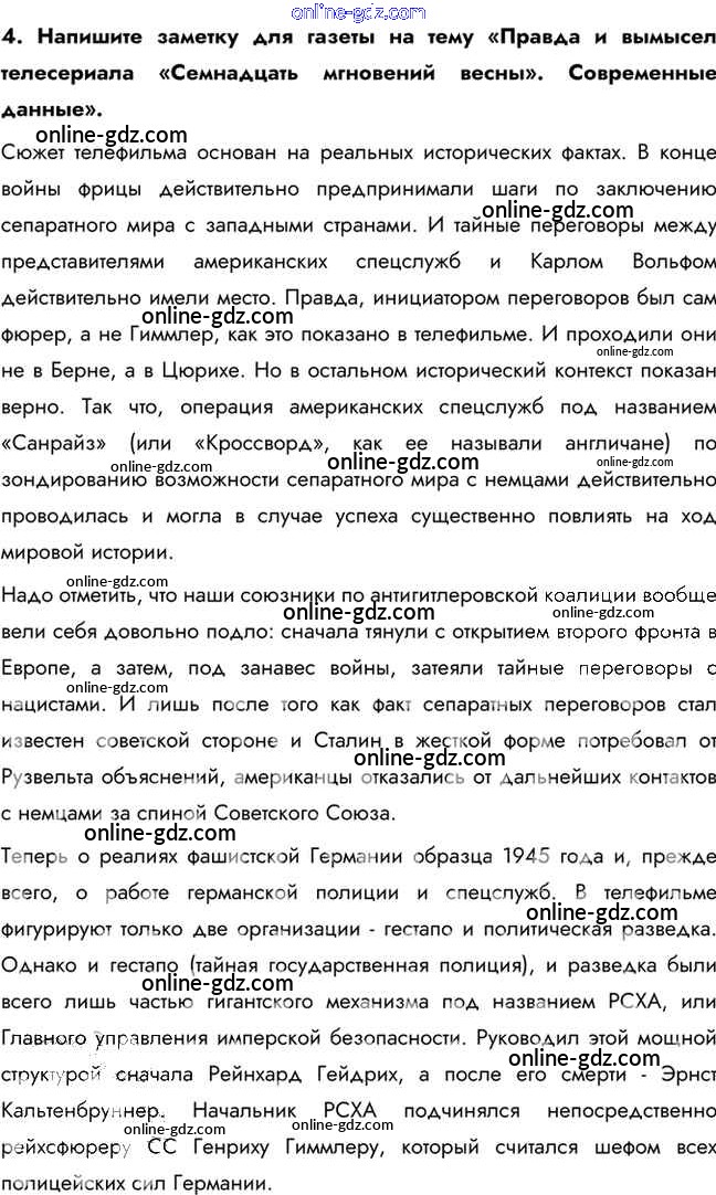 Готовые домашние задания по Истории за 10 класс Учебник Горинов, Данилов 2016 - Думаем, сравниваем, размышляем Советская разведка и контрразведка в годы Великой Отечественной войны 4