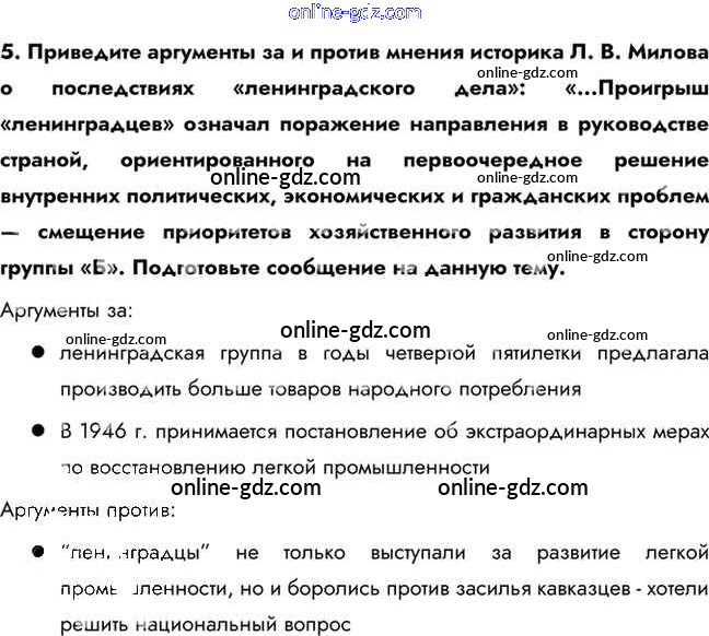 Готовые домашние задания по Истории за 10 класс Учебник Горинов, Данилов 2016 - Думаем, сравниваем, размышляем §28. Изменения в политической системе в послевоенные годы 5