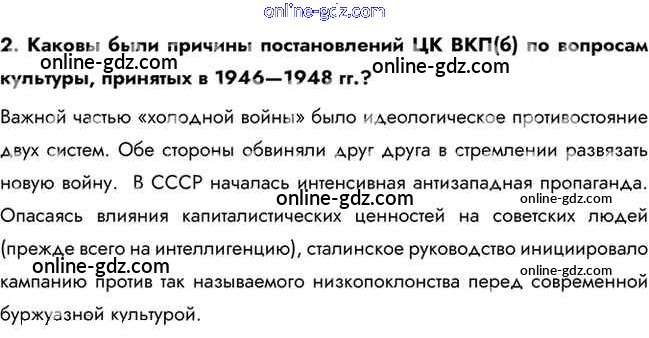 Готовые домашние задания по Истории за 10 класс Учебник Горинов, Данилов 2016 - Думаем, сравниваем, размышляем §29. Идеология, наука и культура в послевоенные годы 2