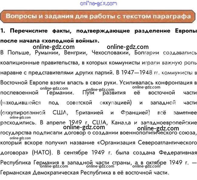 Готовые домашние задания по Истории за 10 класс Учебник Горинов, Данилов 2016 - Вопросы и задания для работы с текстом параграфа §30. Внешняя политика СССР в условиях начала «холодной войны» 1