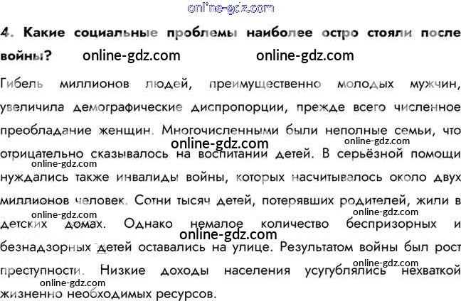 Готовые домашние задания по Истории за 10 класс Учебник Горинов, Данилов 2016 - Вопросы и задания для работы с текстом параграфа Послевоенная повседневность 4