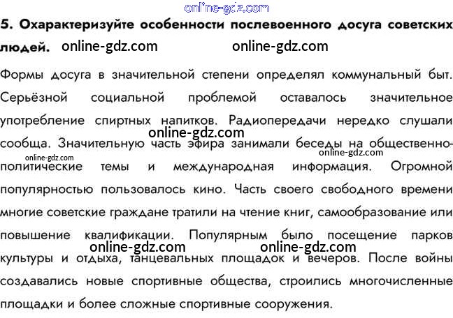 Готовые домашние задания по Истории за 10 класс Учебник Горинов, Данилов 2016 - Вопросы и задания для работы с текстом параграфа Послевоенная повседневность 5
