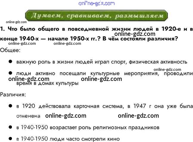 Готовые домашние задания по Истории за 10 класс Учебник Горинов, Данилов 2016 - Думаем, сравниваем, размышляем Послевоенная повседневность 1