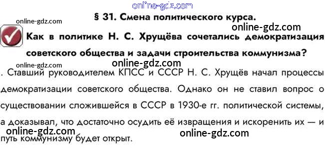 Готовые домашние задания по Истории за 10 класс Учебник Горинов, Данилов 2016 - Вопрос в начале параграфа §31. Смена политического курса 1