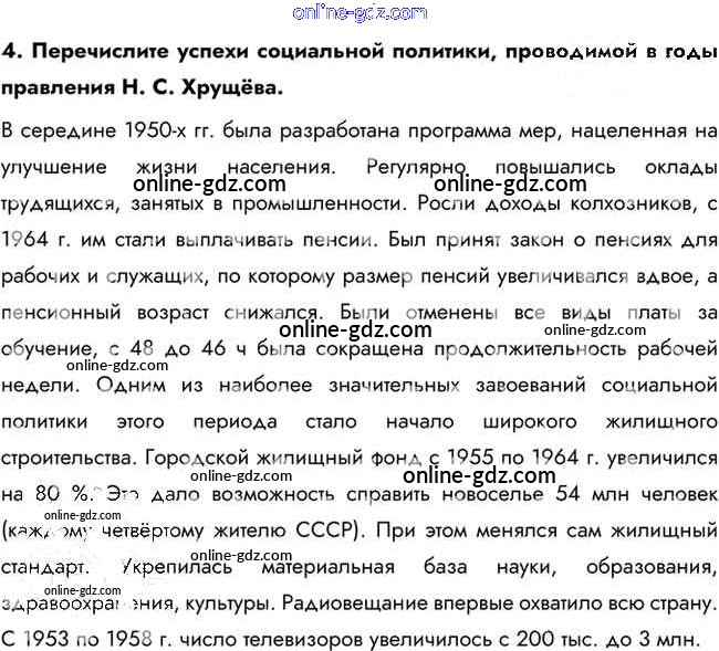 Готовые домашние задания по Истории за 10 класс Учебник Горинов, Данилов 2016 - Вопросы и задания для работы с текстом параграфа §32. Экономическое и социальное развитие в середине 1950-х — середине 1960-х гг. 4