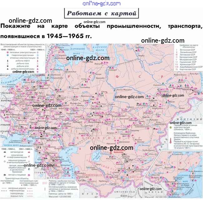 Готовые домашние задания по Истории за 10 класс Учебник Горинов, Данилов 2016 - Работаем с картой §32. Экономическое и социальное развитие в середине 1950-х — середине 1960-х гг. 1