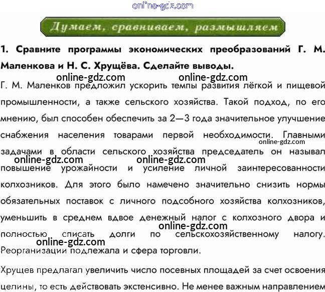 Готовые домашние задания по Истории за 10 класс Учебник Горинов, Данилов 2016 - Думаем, сравниваем, размышляем §32. Экономическое и социальное развитие в середине 1950-х — середине 1960-х гг. 1