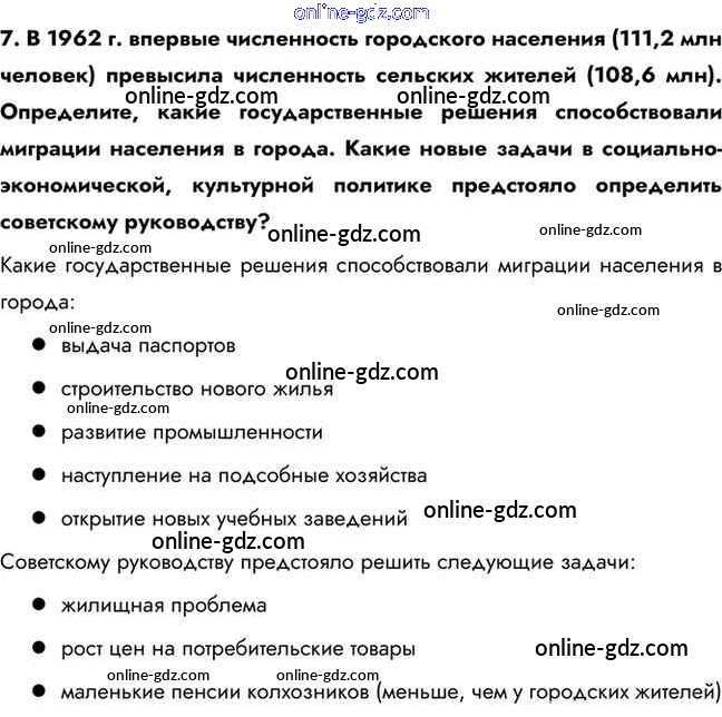 Готовые домашние задания по Истории за 10 класс Учебник Горинов, Данилов 2016 - Думаем, сравниваем, размышляем §32. Экономическое и социальное развитие в середине 1950-х — середине 1960-х гг. 7