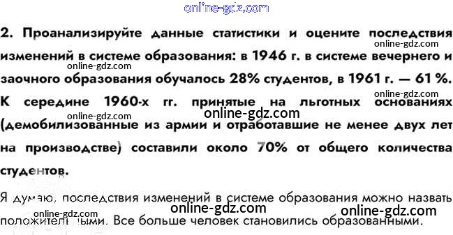 Готовые домашние задания по Истории за 10 класс Учебник Горинов, Данилов 2016 - Думаем, сравниваем, размышляем §33. Культурное пространство и повседневная жизнь в середине 1950-х — середине 1960-х гг. 2