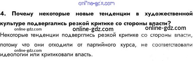 Готовые домашние задания по Истории за 10 класс Учебник Горинов, Данилов 2016 - Думаем, сравниваем, размышляем §33. Культурное пространство и повседневная жизнь в середине 1950-х — середине 1960-х гг. 4
