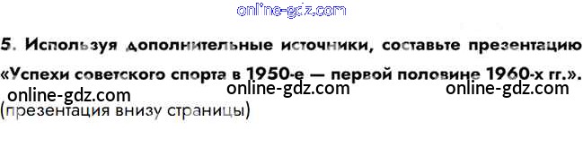 Готовые домашние задания по Истории за 10 класс Учебник Горинов, Данилов 2016 - Думаем, сравниваем, размышляем §33. Культурное пространство и повседневная жизнь в середине 1950-х — середине 1960-х гг. 5