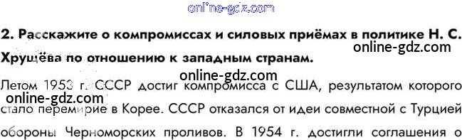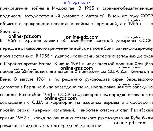 Готовые домашние задания по Истории за 10 класс Учебник Горинов, Данилов 2016 - Вопросы и задания для работы с текстом параграфа §34. Политика мирного сосуществования в 1950-х — первой половине 1960-х гг. 2