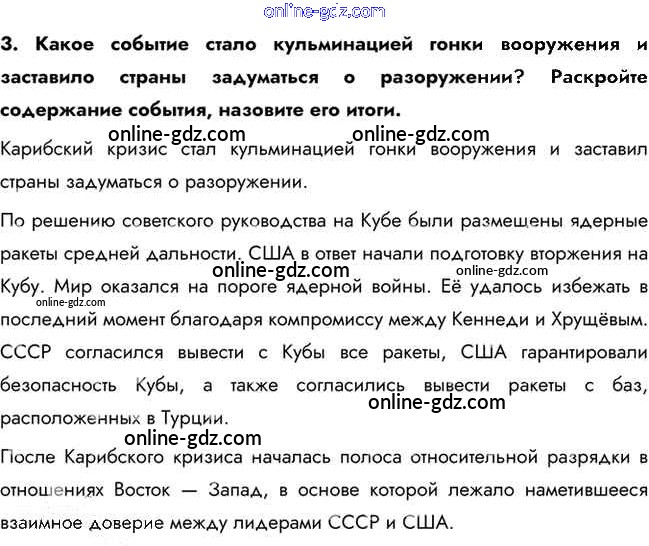 Готовые домашние задания по Истории за 10 класс Учебник Горинов, Данилов 2016 - Вопросы и задания для работы с текстом параграфа §34. Политика мирного сосуществования в 1950-х — первой половине 1960-х гг. 3