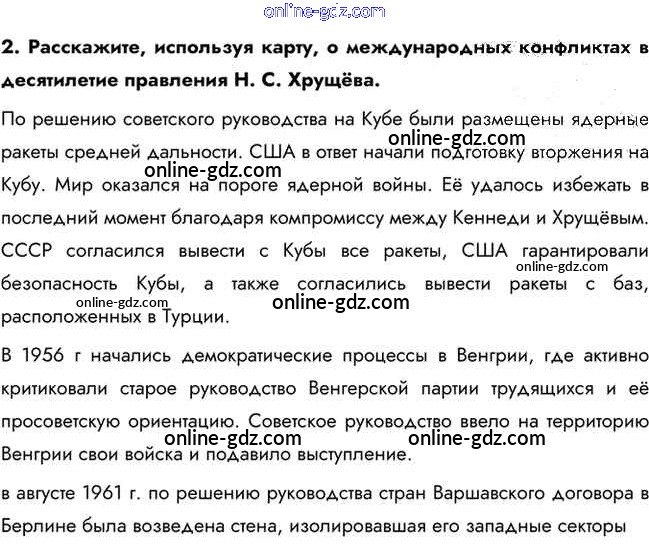 Готовые домашние задания по Истории за 10 класс Учебник Горинов, Данилов 2016 - Работаем с картой §34. Политика мирного сосуществования в 1950-х — первой половине 1960-х гг. 2