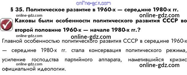 Готовые домашние задания по Истории за 10 класс Учебник Горинов, Данилов 2016 - Вопрос в начале параграфа §35. Политическое развитие в 1960-х — середине 1980-х гг. 1