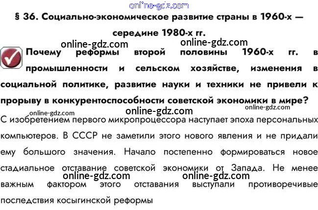 Готовые домашние задания по Истории за 10 класс Учебник Горинов, Данилов 2016 - Вопрос в начале параграфа §36. Социально-экономическое развитие страны в 1960-х — середине 1980-х гг. 1