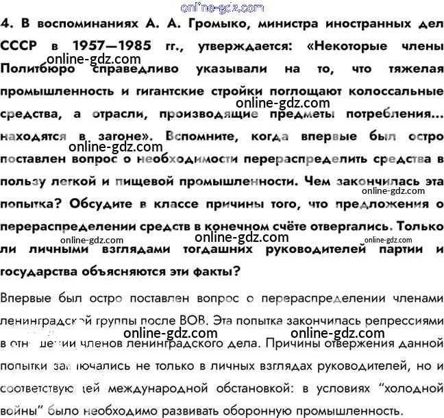 Готовые домашние задания по Истории за 10 класс Учебник Горинов, Данилов 2016 - Думаем, сравниваем, размышляем §36. Социально-экономическое развитие страны в 1960-х — середине 1980-х гг. 4