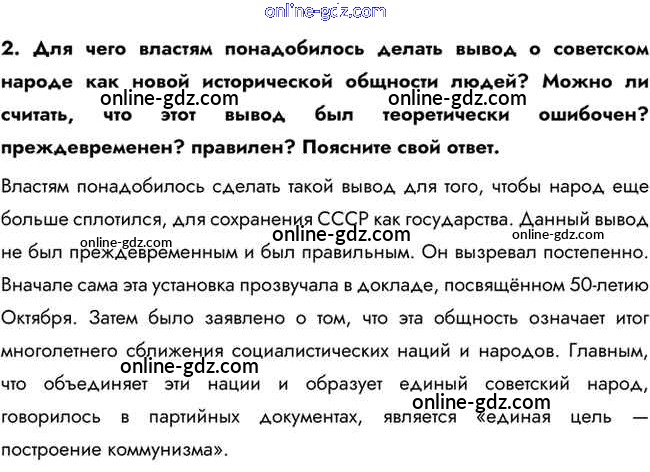 Готовые домашние задания по Истории за 10 класс Учебник Горинов, Данилов 2016 - Вопросы и задания для работы с текстом параграфа Национальная политика и национальные движения в 1960-х — середине 1980-х гг. 2