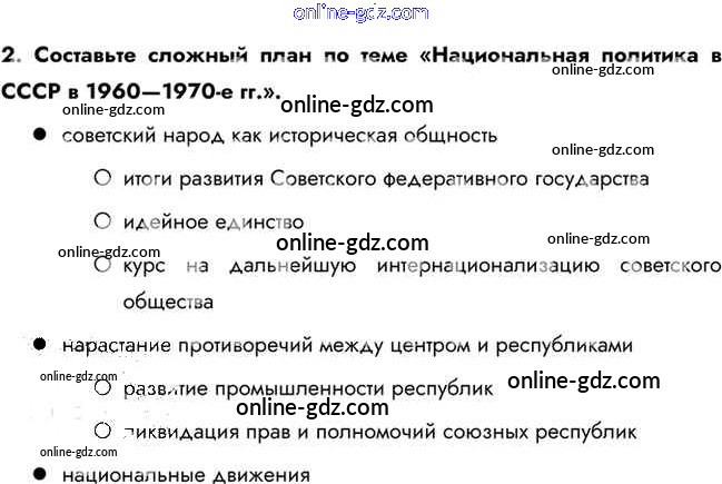 Готовые домашние задания по Истории за 10 класс Учебник Горинов, Данилов 2016 - Думаем, сравниваем, размышляем Национальная политика и национальные движения в 1960-х — середине 1980-х гг. 2
