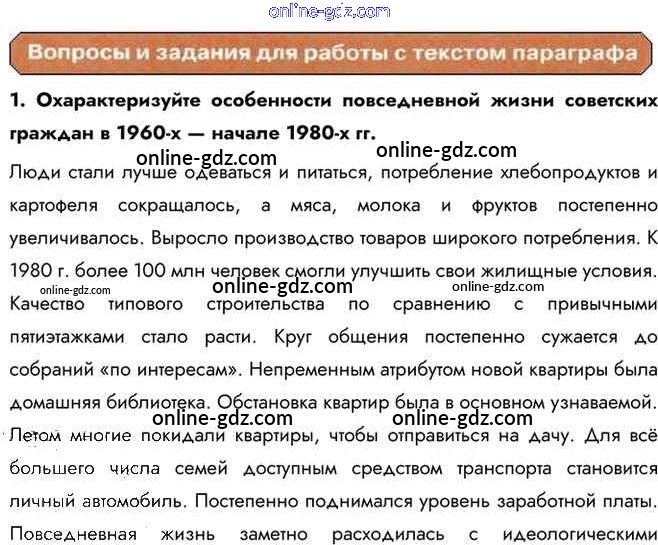 Готовые домашние задания по Истории за 10 класс Учебник Горинов, Данилов 2016 - Вопросы и задания для работы с текстом параграфа §37. Культурное пространство и повседневная жизнь во второй половине 1960-х — первой половине 1980-х гг. 1