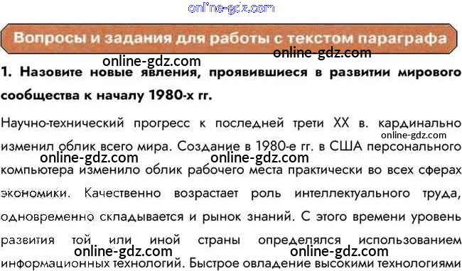 Готовые домашние задания по Истории за 10 класс Учебник Горинов, Данилов 2016 - Вопросы и задания для работы с текстом параграфа §39. СССР и мир в начале 1980-х гг. Предпосылки реформ 1